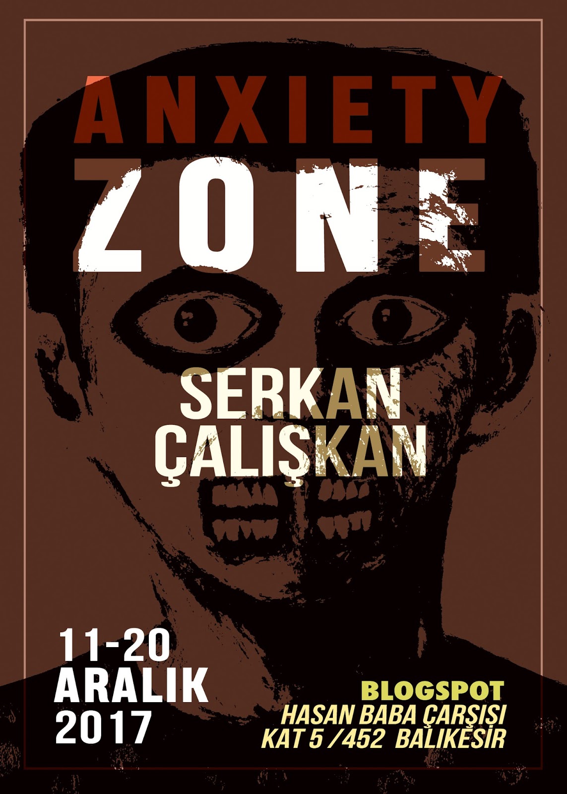 Serkan Çalışkan Balıkesir’de bulunan Blogspot’ta ‘Anxiety Zone’ adlı kişisel bir sergi açtı. Toplumsal kaygı ve karamsarlık hissini, kendi yaşamından da yola çıkarak gerçekleştiren sanatçı, eserlerini dışavurumsal bir yaklaşımla sunuyor.....................................................................................................................................................................................................................................................................................................................................................................................................................................